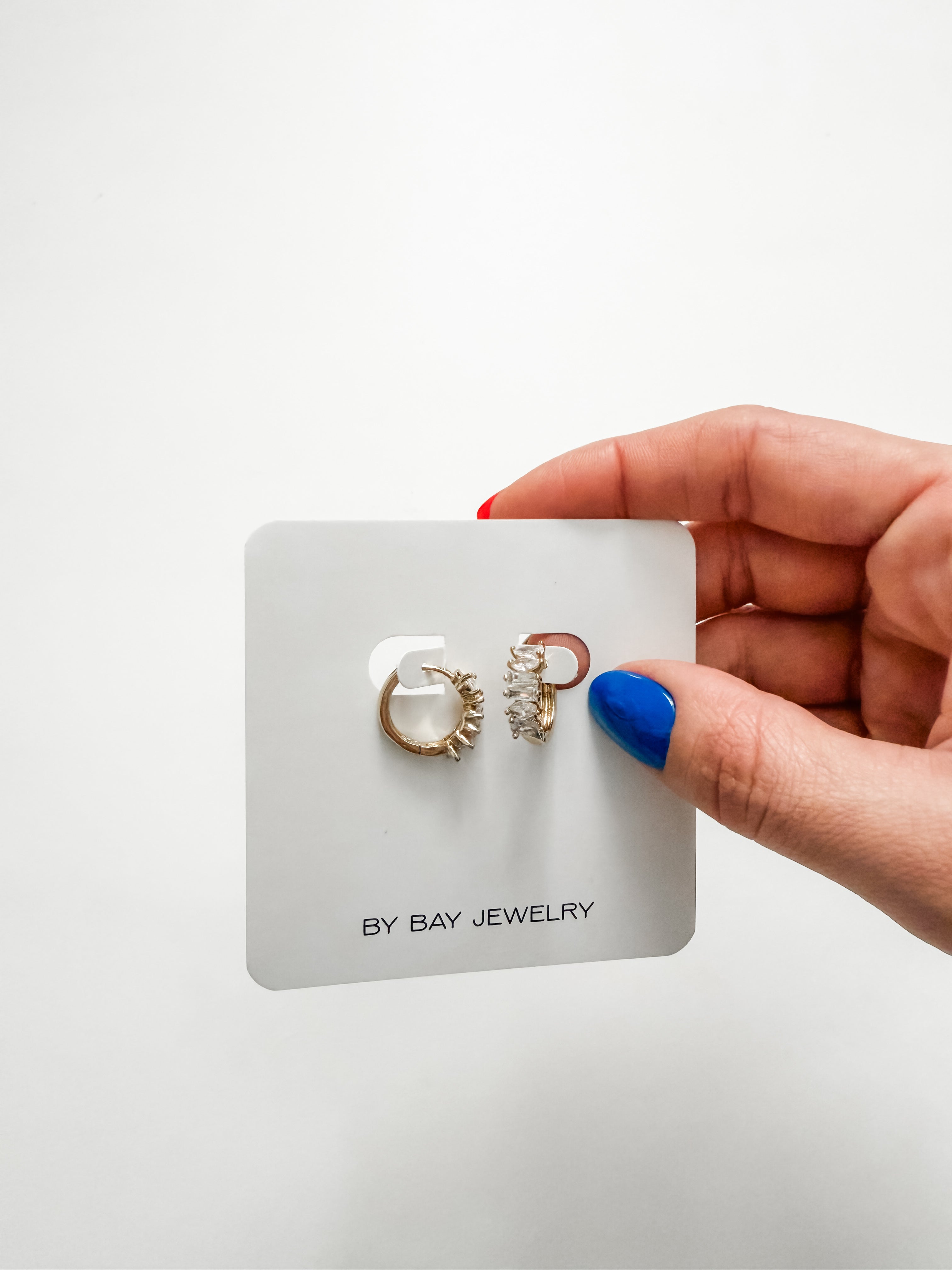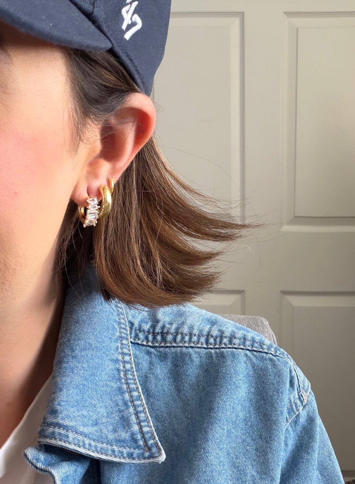 named after emeline from "court of blood and bindings" by lisette marshall, these baguette cz hoops are hypoallergenic and nickel free.