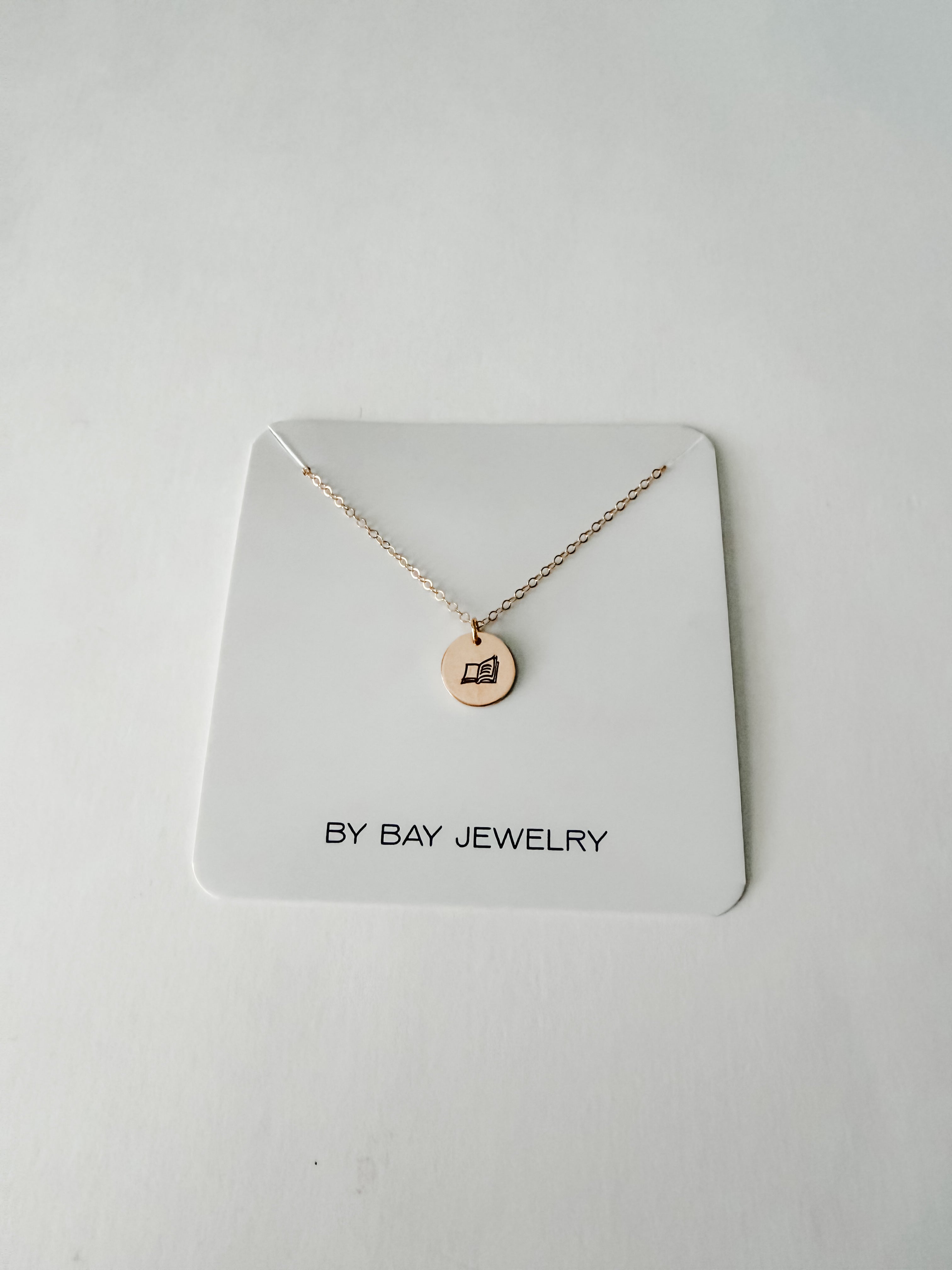 named after frankie zeferino from "always only you" by chloe liese, this necklace has a 14K gold fill chain and a hand stamped book charm.